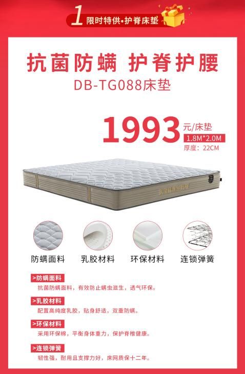这款防螨护脊床垫只在8月7日至8月22日活动期间限时出售,活动价只需1993元,可前往各大东宝床垫专卖店咨询体验。