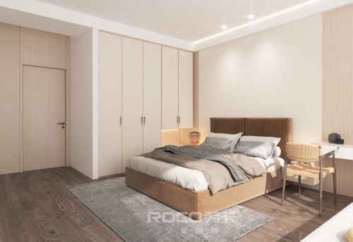 值得一提的是,“自然印象系列”的门墙柜一体化设计,将美学与工艺完美柔和,采用完整如一的色系,进而达到全屋风格的协调统一,不仅起到视觉延伸的效果,而且将空间利用实现最大化。