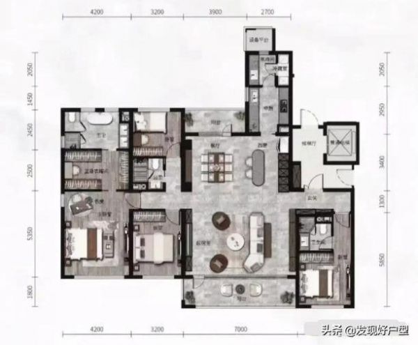 今天我们分享一款230平米的大平层户型。这款户型具备了标准大户型应有的优秀元素。让我们具体来看一下。