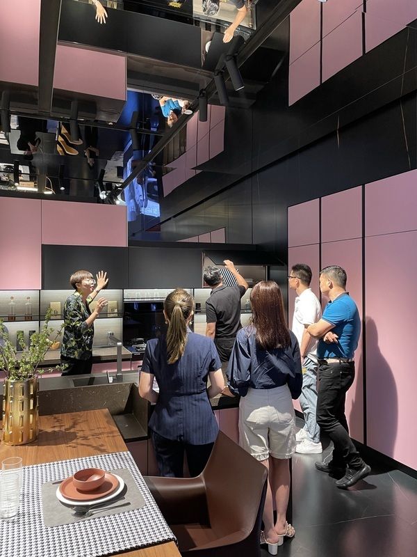 在杭州亿田董事长袁佳的介绍与陪同下,各位到场嘉宾领导走访参观了亿田品牌旗下首个面积超过700㎡的高端定制厨房展厅。在厨房空间与生活格调的氤氲氛围中,零距离感官了新时代高定厨房的全新场景,从第一视角感知了现代菁英人群对于生活品味、厨房功能的真正探索与需求。