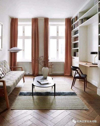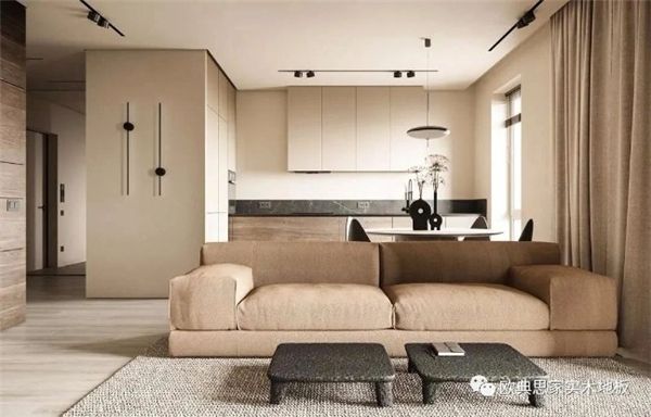明快、轻松,给人没有压力、没有攻击性的柔和感受,是大多数人都能够接受的明亮色调。木地板可以使空间呈现清新、通透的自然氛围。米色和浅木色属于非常百搭的融合色,十足的现代北欧风,简约的线条设计搭配清晰的木纹,淡雅、诗意,又有着素朴的早秋格调。