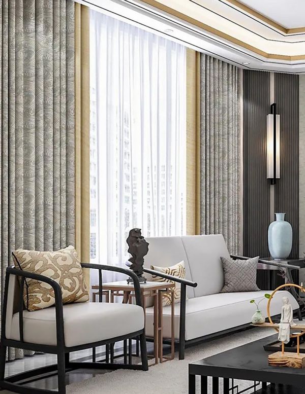 以小见大,我们拿常见的天洋窗帘来说。中国元素比如纹样的使用,不仅仅只是构造了中国元素,告知居者传统海水纹的魅力,更是当风拂过窗帘,你能觉察其中蕴含的绵延不断”、“喜乐安康”的吉祥寓意,真正的构建出素雅与高贵的空间之美。