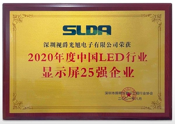 视爵光旭荣获“2020年度中国LED行业显示屏25强企业”