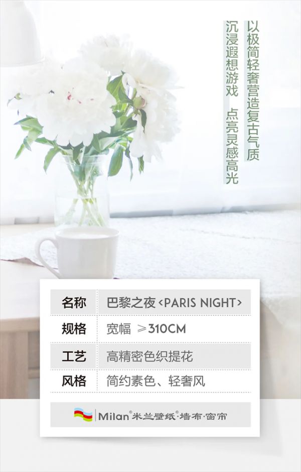 【米兰壁纸墙布窗帘】墙布十大品牌之米兰墙布《巴黎之夜》丨拥抱 时尚视界