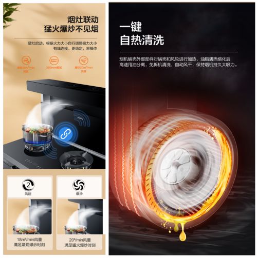 与此同时,随灶启动,可根据火力大小自行调整吸力大小,有线连接,更稳定,易操作。加之一键自热清洗功能,热分离及时,彻底杜绝油污粘附在机体内部,保持风机系统吸力强劲如一,持久稳定。油烟减少,智能清洗,有了迅达猛火集成灶,人们再也不用为清洁厨房而发愁了。
