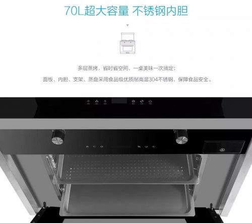 创新2:蒸烤升级,70L超大容量、搭配八大智能烹饪模式,随心烹调,一步到位!