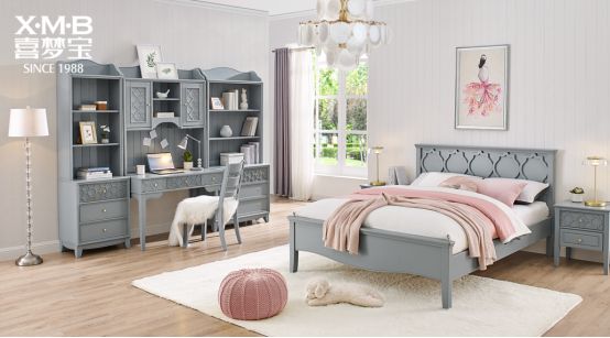 二、喜梦宝家居拥有近万款设计款成品家具库,消费者可选择设计款家具改款为定制家具,使家具延续喜梦宝成品家具的设计感、品质感与艺术造型、结构色彩等,既满足功能性又突显个性化,颠覆传统定制家具的刻板形象,让儿童房不再枯燥而单调。