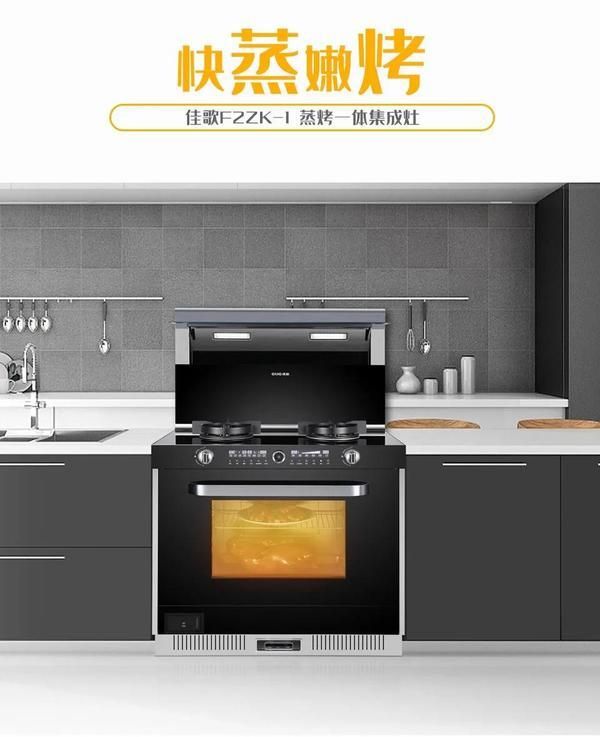 佳歌F2ZK-1集成灶集成70L超大容量蒸烤箱,蒸箱功能采用食品级硅胶管导入蒸汽发射器直喷速热,更少蒸汽蒸得更透。蒸箱内胆采用304食品级不锈钢材质,一体拉伸无缝内胆设计,品质佳易清洁。
