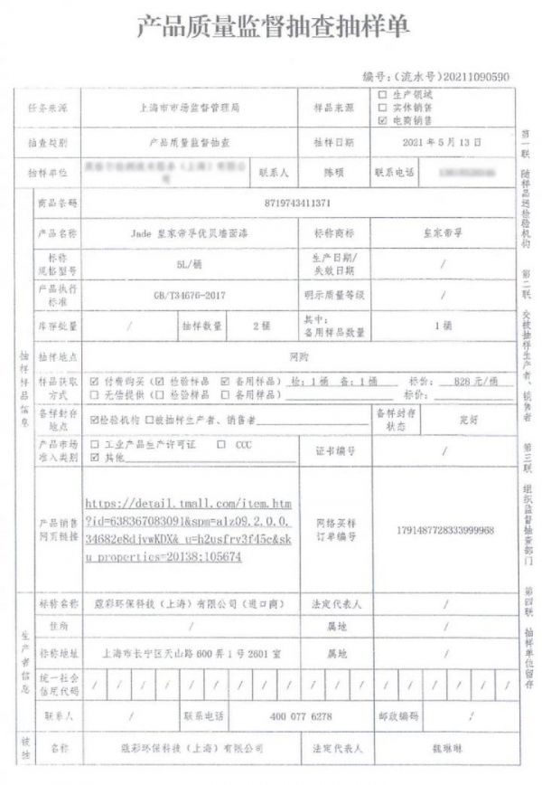 此次产品质量监督抽查,上海市市场监管局抽样产品优贝墙面漆来源于【皇家帝孚涂料旗舰店】,并在选购中询问是否执行儿童漆标准,确保所购买的产品符合儿童漆抽样标准。