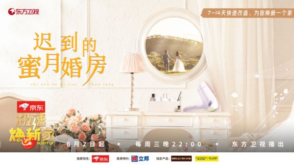 本周三晚22点,锁定东方卫视,由京东家电独家冠名播出的《极速焕新家》第一季第十期《迟到的蜜月婚房》,敬请期待这段甜蜜的恩爱之旅。