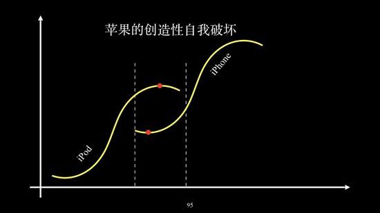 ipod当时占苹果业绩的74%,只有乔布斯敢用iphone去自我破坏颠覆;