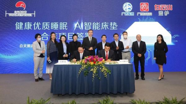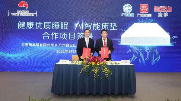 2021年8月2日,广药集团旗下白云山壹护公司与白天鹅宾馆的健康优质睡眠AI智能床垫合作项目签约仪式在广州举行,广药集团党委委员、副总经理兼白云山壹护公司董事长吴长海与白天鹅宾馆首席运营官张添签订合作协议。