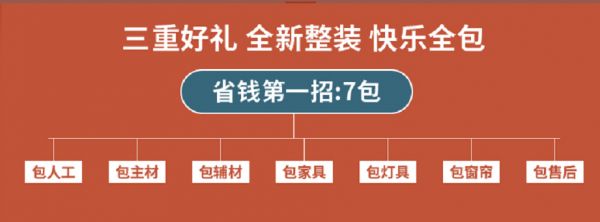 第一重“七包”,包人工、包主材、包辅材、包家具、包灯具、包窗帘、包售后,带给业主“一站式”全包的省心和完工直接“拎包入住”的称心。