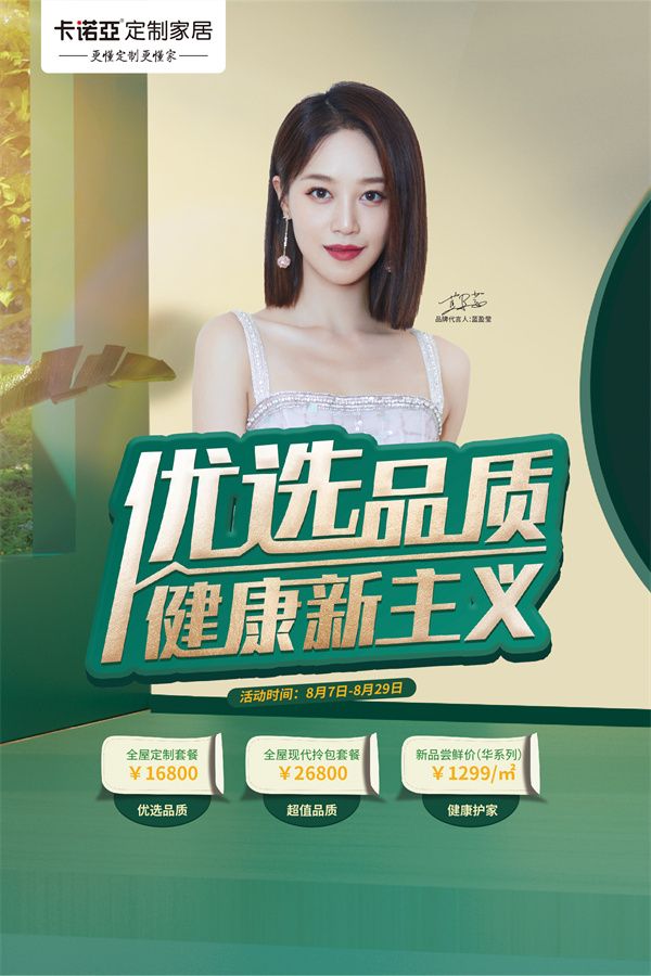 为了满足消费者对健康家居、品质生活的升级需求,20年坚守环保理念的卡诺亚定制家居于8月7日-29日,在全国1000多家品牌专卖店举行“优选品质,健康新主义”大促,高性价比全屋定制套餐¥16800等6大套餐震撼登场,尤其是本次大促主推的高端产品华系列,将为更多的家庭带来品质与健康兼具的家居空间。