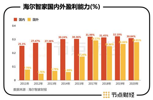 在海外方面,海尔智家已建立起全球市场格局。有些海外资产在海尔智家接手前,盈利能力普遍偏低,海尔智家更注重协同能力带来的利润改善,经过近几年的整合和调整,盈利能力都在提高。
