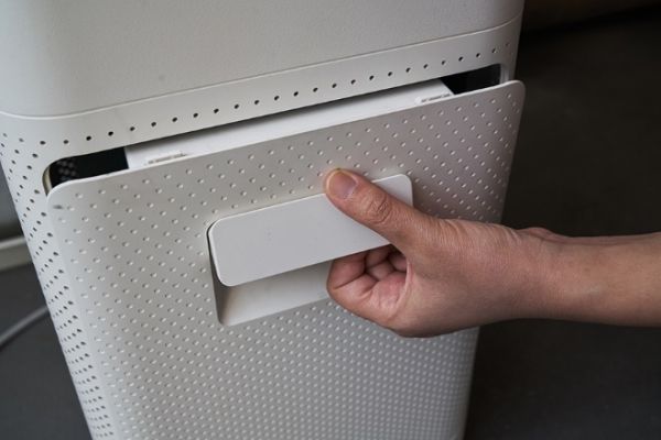 米家空气净化器Pro的滤芯仓开启非常简单,只需扣起把手即可,方便用户进行滤芯更换。
