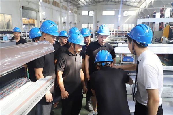 为更好的了解产品的细节和性能,在正式学习开始前,学员们一起参观了工厂车间,观摩切割、套框、压条、注胶等生产步骤。学员们表示,熟悉产品的生产过程,对提升安装技能非常有帮助,越是掌握产品的细节,越有利于优化操作技巧。