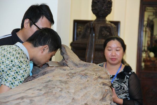 来访者纷纷在国宝级海南黄花梨千年野生老料巨木前驻足观摩
