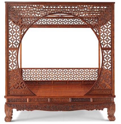 海南黄花梨月洞形棚架床