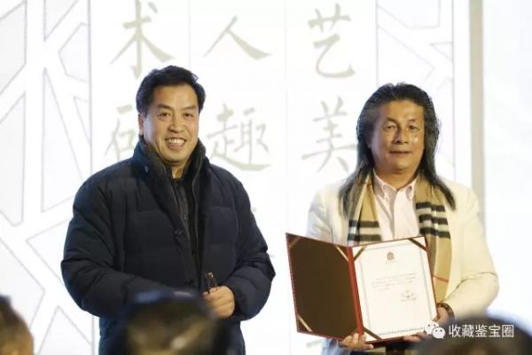 故宫博物院常务副院长王亚民向伍炳亮颁发感谢信,感谢其为弘扬中国传统家具艺术做出的杰出贡献。