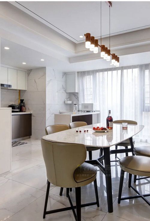 2、开放式厨房让空间看起来更通透,厨房与餐厅空间可以互借,对于小户型来说,可以实现最大化利用。
