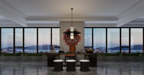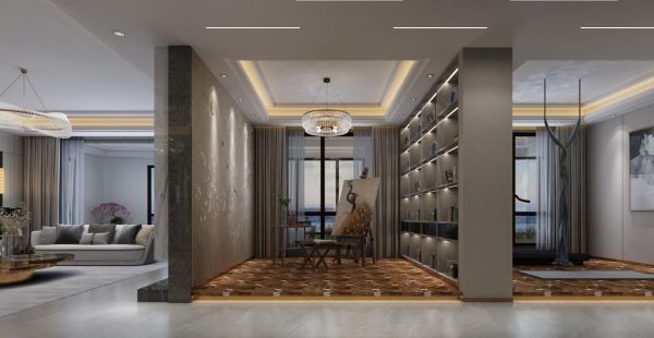 健身瑜伽空间:随着经济水平的增长及人民意识的提高,屋主一家也比较重视健康理念,因此,健身瑜伽室也是必不可少的一部分,健身瑜伽室位处走廊一侧,面对超大景观阳台,一整块落地玻璃的设计,不仅能实现最大采光和通风的要求,还将窗外的美景尽收眼里,在屋主得到身体锻炼的同时,也丰富了其精神世界。
