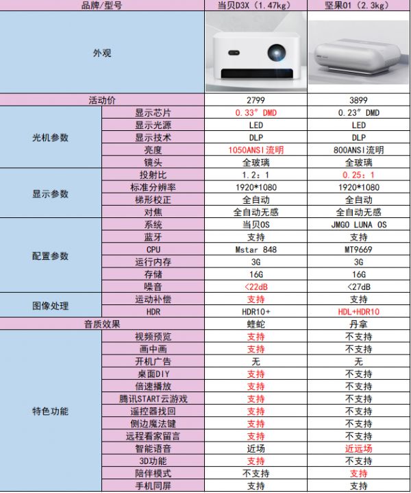 总体而言,狗子觉得坚果O1的这个超短焦有其优势所在,但1000元的jia格悬殊,当贝D3X确实更实用且更具性jia比。