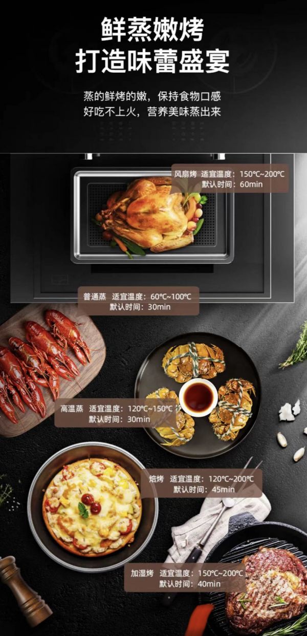 无论对美食有多热爱的吃货们,也禁不起长时间在厨房"修炼",因此,缩短做饭用时成了亟待解决的关键。德希卡集成灶将蒸烤箱功能引入,设计出携带蒸烤箱款的集成灶,60L大容量蒸烤箱,将上炒下蒸烤多线程烹饪成为可能;其次德希卡十分注重各类烹饪细节,1℃精确控温的设计,满足各种食材蒸制需求,就连厨房小白都十分容易上手;24小时定时预约功能,将美味长久保持,让上班族也能吃上热腾腾的蒸菜。不论你准备的是什么食材,德希卡集成灶蒸烤箱都能助你完美掌控温度与时间,让美味恰到好处,手艺不输大厨。