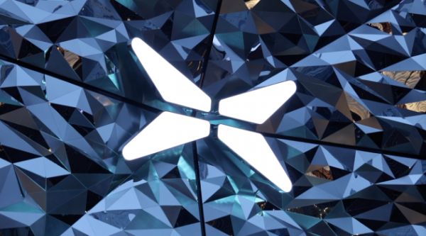 从建筑外观开始,以小鹏科技感的“X”型logo为中心,一片片光学素材以不同角度立体拼合延展,形成一整面震撼视觉的光影幕墙——点与点成为线、线与线连接成面,面最终构成空间,创造出的全新世界将我们引向未来;