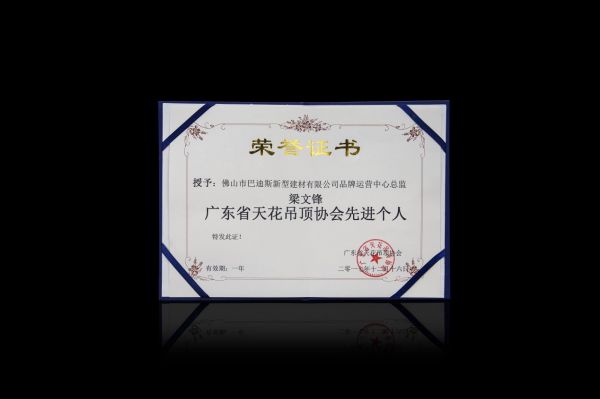 荣获2017年度广东省天花吊顶协会先进个人
