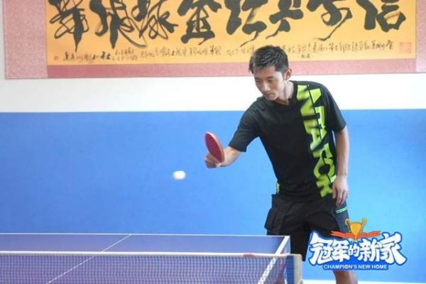 △张继科忍不住和科爸在改造后的乒乓球室来一场“父子局”。