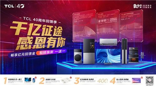 除了自身强大的驱动力,40年来无数支持TCL的消费者也帮助TCL度过了无数次风雨,这才有了TCL今日的辉煌。所以在40周年庆这样一个特殊的日子里,TCL为用户带来了各种优惠活动。