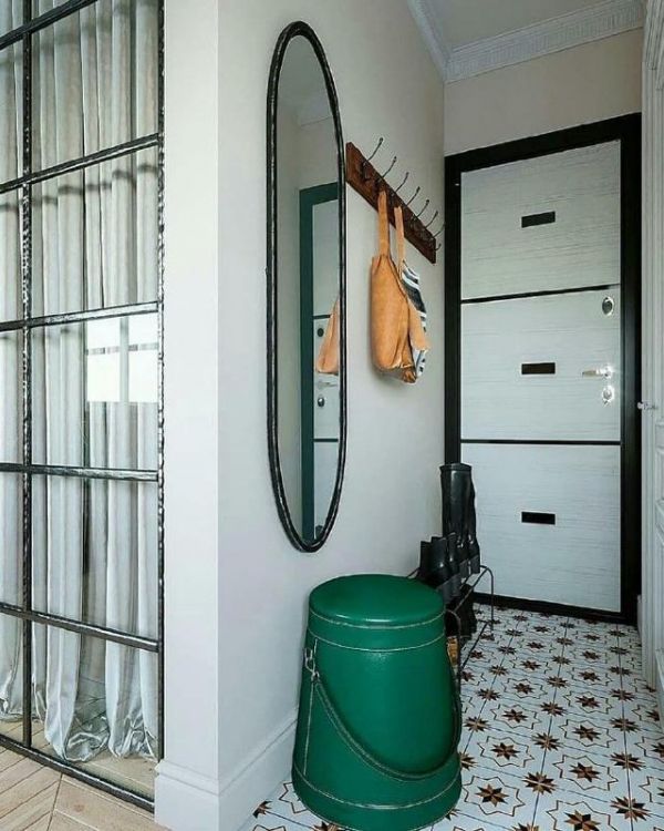 走进顾阿姨的28㎡之家,看到玄关的第一眼,就有种眼前一亮的感觉。拼接式的花纹瓷砖,简单的穿衣镜,墨绿的皮质换鞋凳,还有一个小小的鞋架,上面摆满了顾阿姨的高跟鞋和小皮鞋。