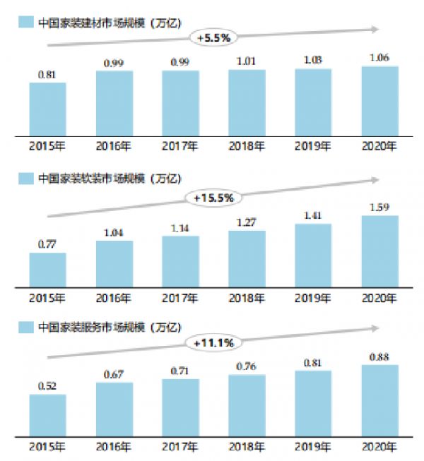 不寻根源何起,2015年至今,家装行业内活跃的种种现象,至少释放了一种信号——有利可逐。据2021年中国家装行业数字化研究报告显示,目前家装市场拥有3.5万亿规模,仅软装市场就1.6万亿,且2015年到2020年复合增长率为15.5%,远高于同期其他领域的家装市场。更有甚者认为,家居行业是仅次于房地产的第二代产业,所以选择了这一行业无异于投身一片蓝海。既然如此,与其逆水行舟,不进则退,倒不如顺势而为。