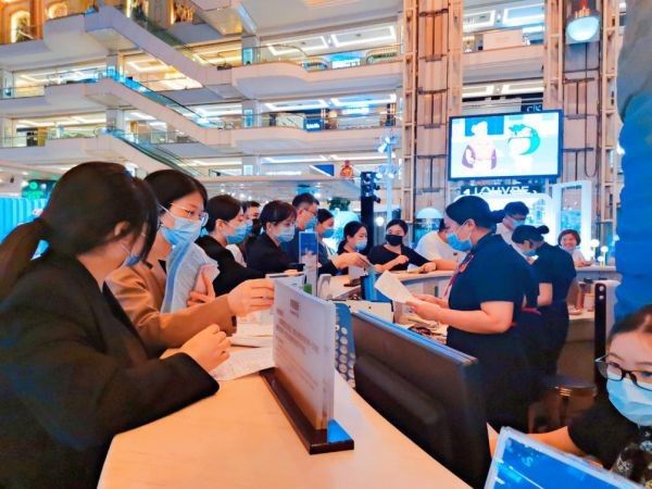 每天的11点、15点、18点前后,在中庭的抽奖舞台、收银台基本都能看到客户排长龙的情况。