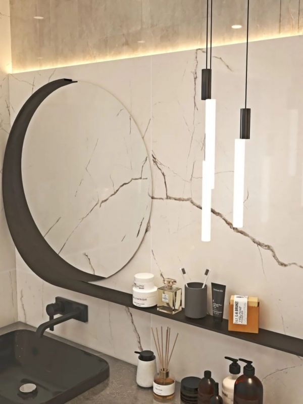 智能圆镜,它独有的圆形曲线具有很高的装饰性,搭配金属置物架,轻松让家逼格满满。