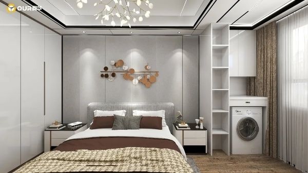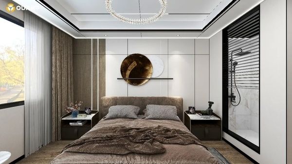 在吊顶线条、光线明暗的配比下,卧室以悦动优雅的姿态呈现在我们眼前。相融、自在、柔和,于空间中慢慢延伸开来...