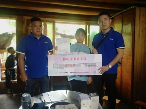 了解这位同学的情况后,当地代理商黄高粮马上带领团队来到丹寨县,送上助学金和开学大礼包,鼓励她要坚持梦想,努力学习。而王万琴也表示,自己一定会继续拼搏,不让大家失望。