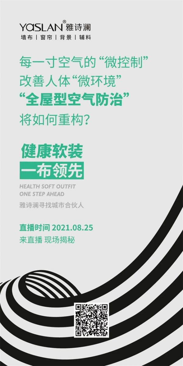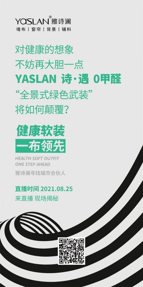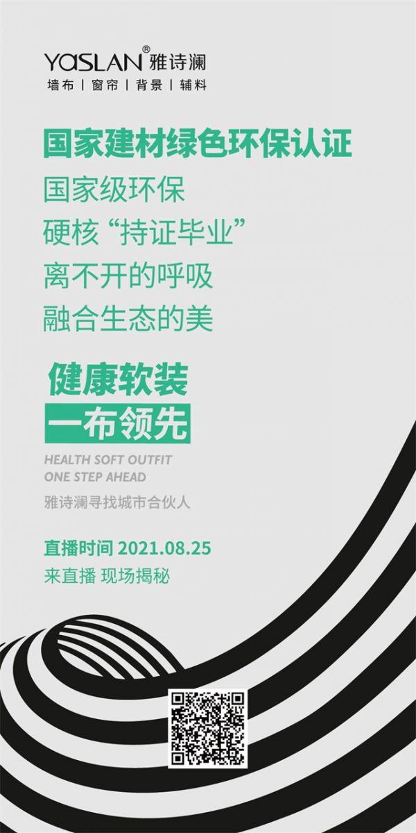 8月25日晚19:00点,雅诗澜将继续以直播的方式,开启一场“健康软装·一布领先”的主题新品发布会,诚挚邀请广大客户,共同见证“诗·遇”系列发布会,鉴赏雅诗澜新品。