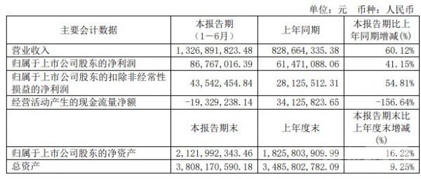 8月26日,金牌厨柜(603180)发布2021年半年报,公司2021年1-6月实现营业收入13.27亿元,同比增长60.12%,归属于上市公司股东的净利润为8676.70万元,同比增长41.15%,基本每股收益为0.61元。