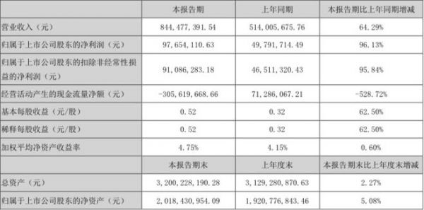 8月26日,皮阿诺(002853)发布2021年半年报。报告显示:2021年上半年,皮阿诺实现营业总收入8.44亿元,比上年同期增长64.29%;实现归属于上市公司股东的净利润0.98亿元,比上年同期增长96.13%;基本每股收益为0.52元。