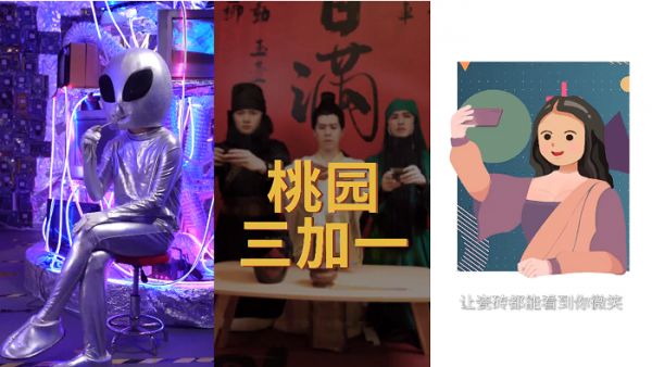 除了走心、暖心的微电影,蒙娜丽莎微笑节在“逗笑”用户上也下足了功夫,外星人入侵、刘关张桃园三加一……脑洞大开的微笑创意短视频,在引流促活的同时,巧妙植入微笑节大促信息。
