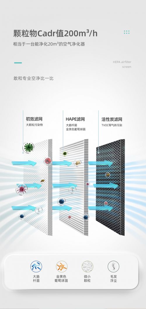 敢和专业空净比一比。Airapex阿尔卡司净化无雾加湿器采用H13高效HEPA滤网净化空气,颗粒物CADR值高达200㎥/h,相当于一台能净化20m3空间d额空气净化器。进风即刻净化,能够有效去除空气中99.9%的微小颗粒,过滤金黄色葡萄球菌和大肠杆菌,去除宠物毛发及异味,去除PM2.5及其他细菌等。拥有1台Airapex阿尔卡司净化无雾加湿器,相当于同时拥有1台专业空气净化器+1台专业加湿器。