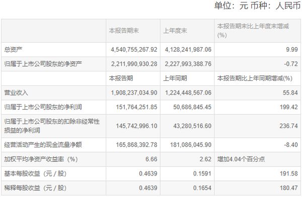 公告显示,报告期内志邦家居股份有限公司实现营业收入19.08亿元,同比增长55.84%;实现归属于上市公司股东的净利润1.52亿元,同比增长199.42%;基本每股收益0.4639元/股。公司整体经营目标全面完成,实现营收、业绩稳步增长。