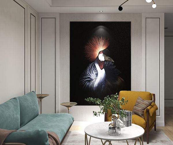 乾庄用绣线描绘牡丹超凡脱俗的美,为室内空间渲染出一番华贵平和之气,绣品的肌理与光泽随着空间的光彩折射出迷人的质感,让其富有诗意和内涵。吉祥的孔雀与现代审美相结合,蕴含中国源远流长文化沉淀的艺术。庄重典雅的氛围中流露出深厚文化底蕴,给人一种涉足探步的冲动和欲望。