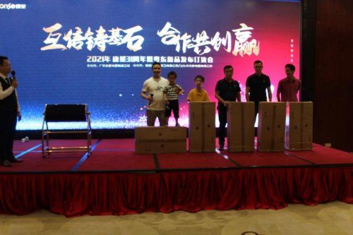 同时,主办方为回馈一众经销商,更特设了五轮抽奖环节,奖品涵盖了家用电器、现金大奖、小礼品等,惊喜不断,无时无刻都有钜惠呈现,引得在场经销商热情连绵,并携带小孩子上台领奖,欢乐不断。无论是品牌影响力、产品创新度,还是政策的支持力度,康星电器都力求以实实在在的举动来支持帮扶粤东的经销商家人,为其提供坚实的后盾。