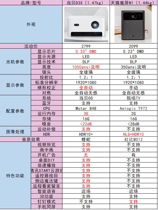 能成为爆款确实是都不错,感觉当贝D3X更适合小户型、上班族、喜欢潮流的年轻群体。而魔屏N1相对更适合大户型放在卧室使用、只想中规中矩用投影仪看电视的家庭。