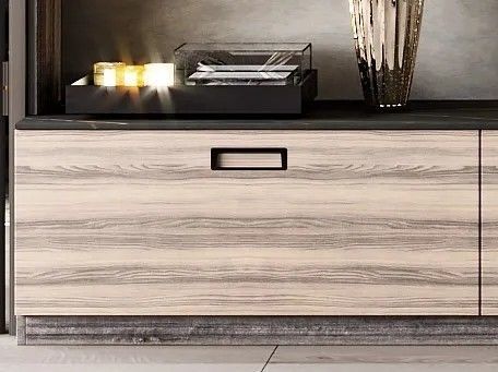 “新尚流云”系列的柜身则是使用了横滨白双饰板,其表面布满立体感十足的科技横纹,视觉上更加生动。而柜体上磨砂玻璃的使用则隐藏了家里的凌乱,还能营造出朦胧之美。