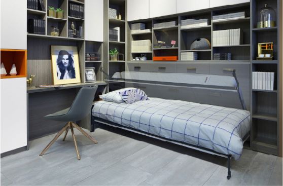 欧派衣柜定制不仅是解决每一个家庭的生活痛点,更是通过特色化的“衣柜定制”为每一个消费者营造更加个性化的精彩生活,提升家居生活品质。欧派衣柜特色侧翻床设计,巧妙地利用了墙面空间,安放于书房之中,放下是舒适的卧室空间、竖起又变成了正儿八经的书房,空间功能多样性得到巨大提升。