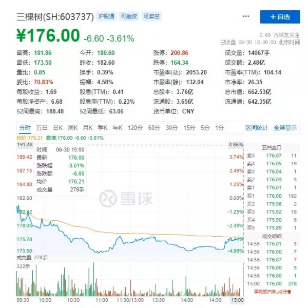 6月29日,三棵树发布公告称,2021 年第一季度,因个别大型地产商资金周转困难,公司应收票据出现逾期情形,其中,中国恒大逾期票据金额5137.06万元。此消息一出,可谓一石激起千层浪,尽管恒大连夜发表声明已完成兑付,但受此影响,截至6月30日收市,三棵树报176.00元/股,相比开盘时跌幅近4%。